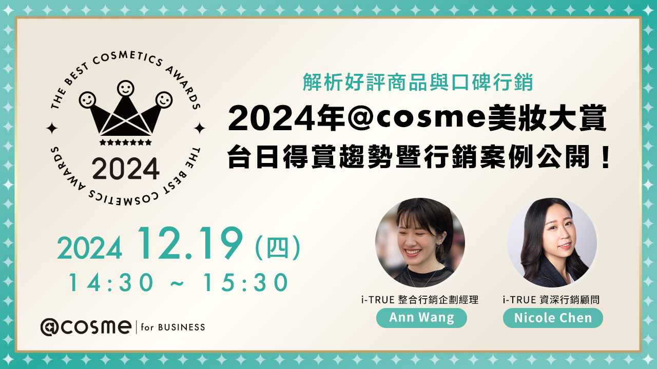 解析好評商品與口碑運用!2024年@cosme美妝大賞 台日得賞趨勢暨行銷案例公開